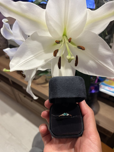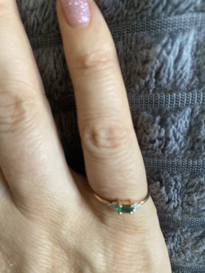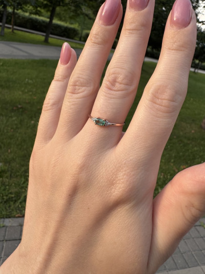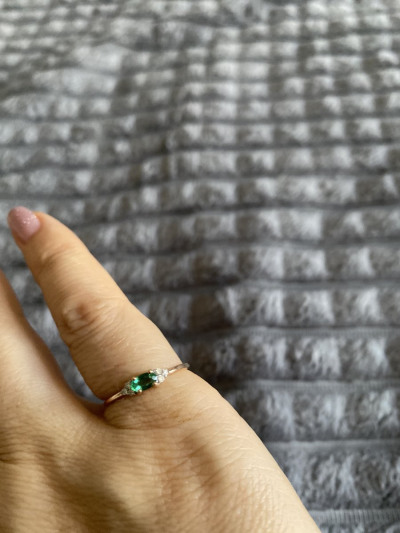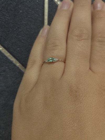 Очень нежное и красивое колечко с натуральным изумрудом и бриллиантиками. Я хотела украшение с изумрудом, я его получила😁 Впереди сережки😉 Благодарю консультанта Викторию за помощь в выборе украшений🥰
