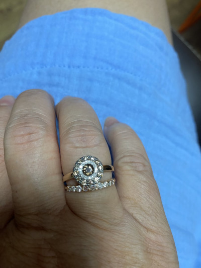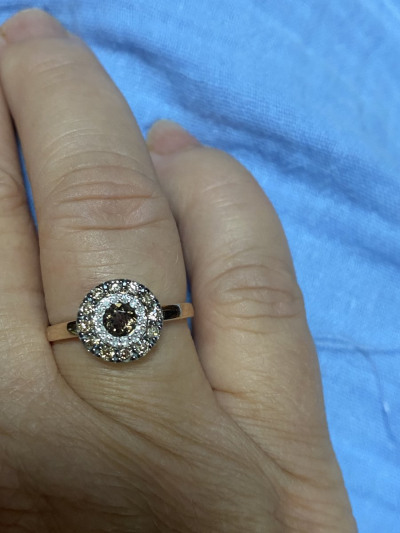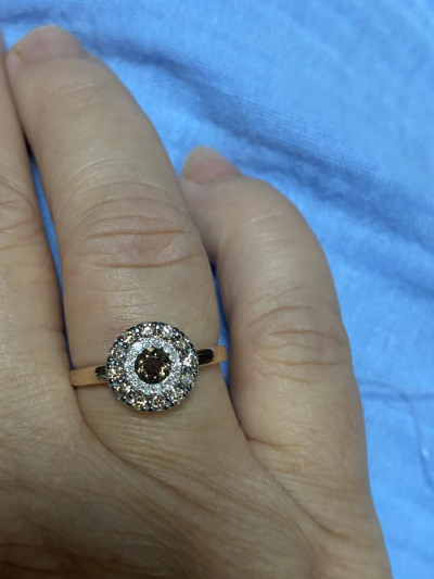 12 бриллиантами коньячными природными, 0.26 карат, огранка круг 57 граней, цвет 7, чистота 5, тип огранки А;