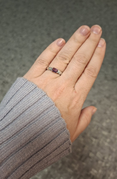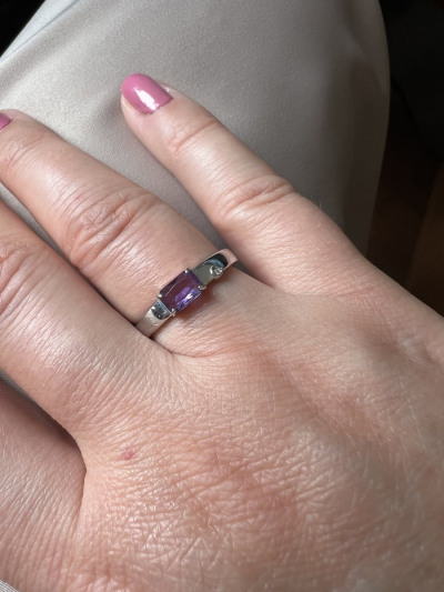С кольцом всё в порядке. Цвет аметиста глубже и насыщенее, чем на фото в каталоге. Бриллиант, хоть это и крошка, на вид больше.