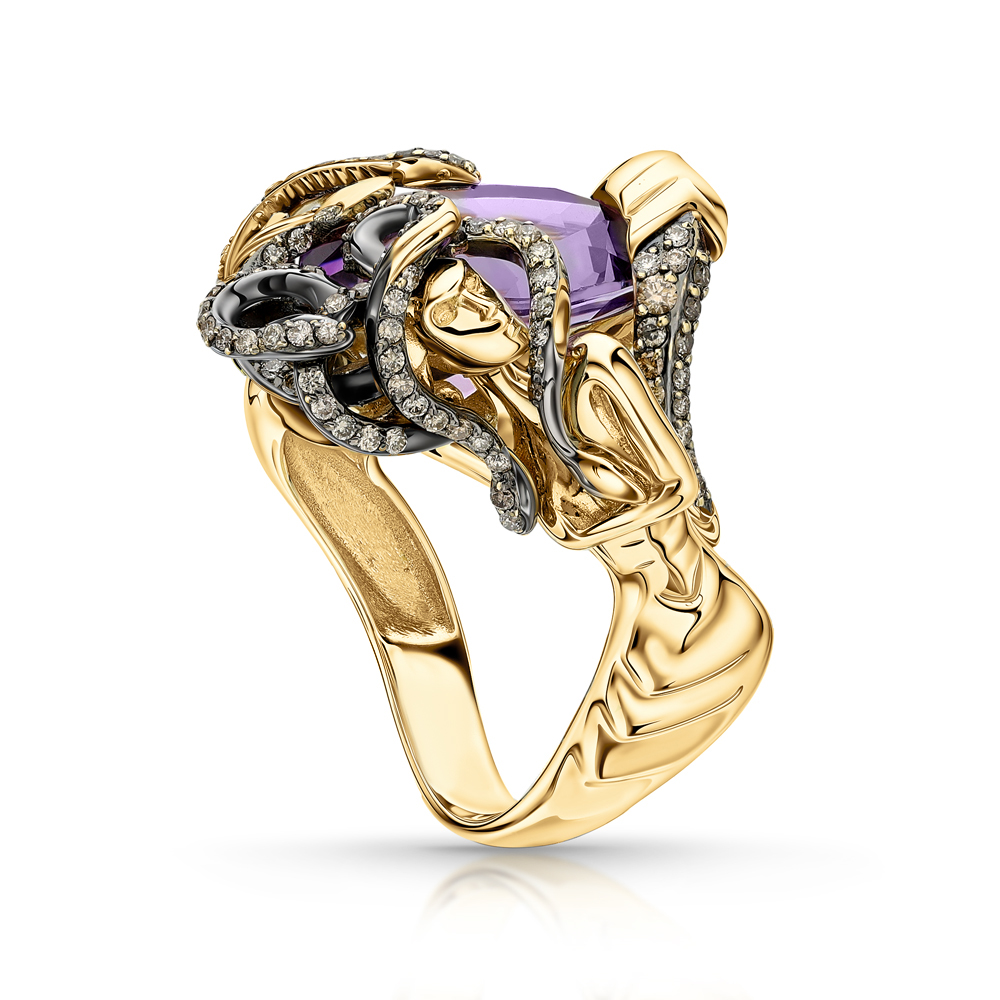 - ВставкаБриллиант природный, Аметист природный, Бриллиант коричневый природный