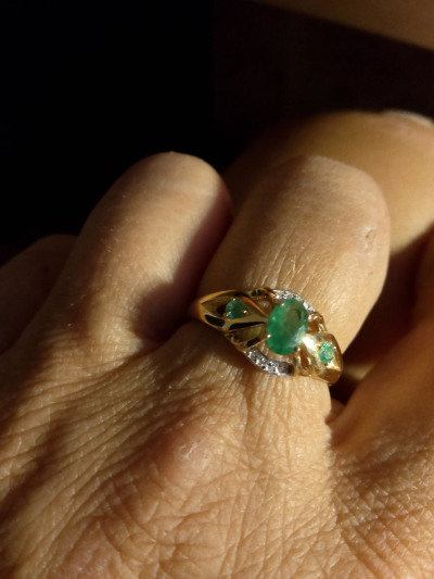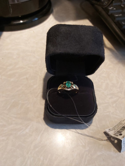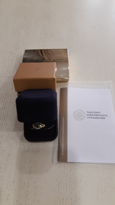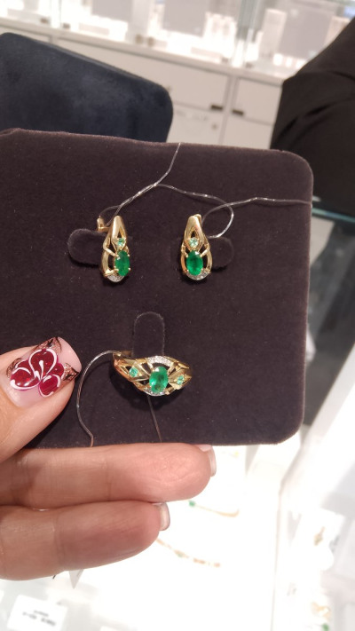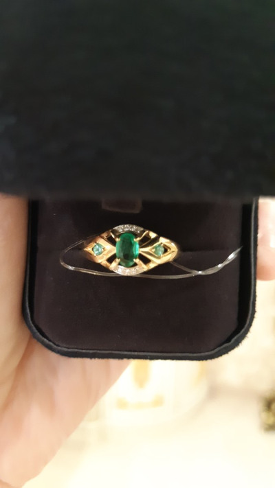 Сегодня купила кольцо к сережкам. Натуральным камнем изумрудом и бриллиантами природными. Очень довольна.