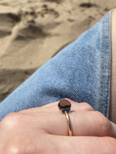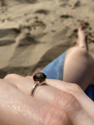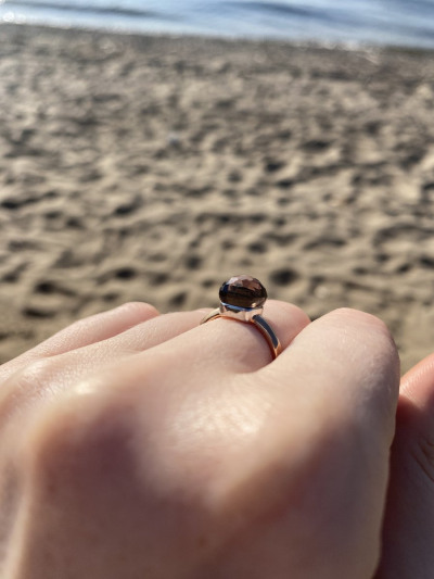 Кольцо, будто кусочек мармелада на золотистой дужке — лёгкие, стильные и соблазнительные