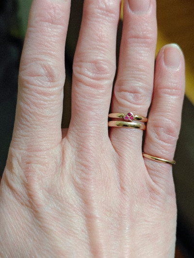 Очень красивое, удобное, лёгкое кольцо. Размер соответствует. Отлично дополнило обручальное шириной 2,5 мм. Для тех, кто любит миниатюрные кольца.