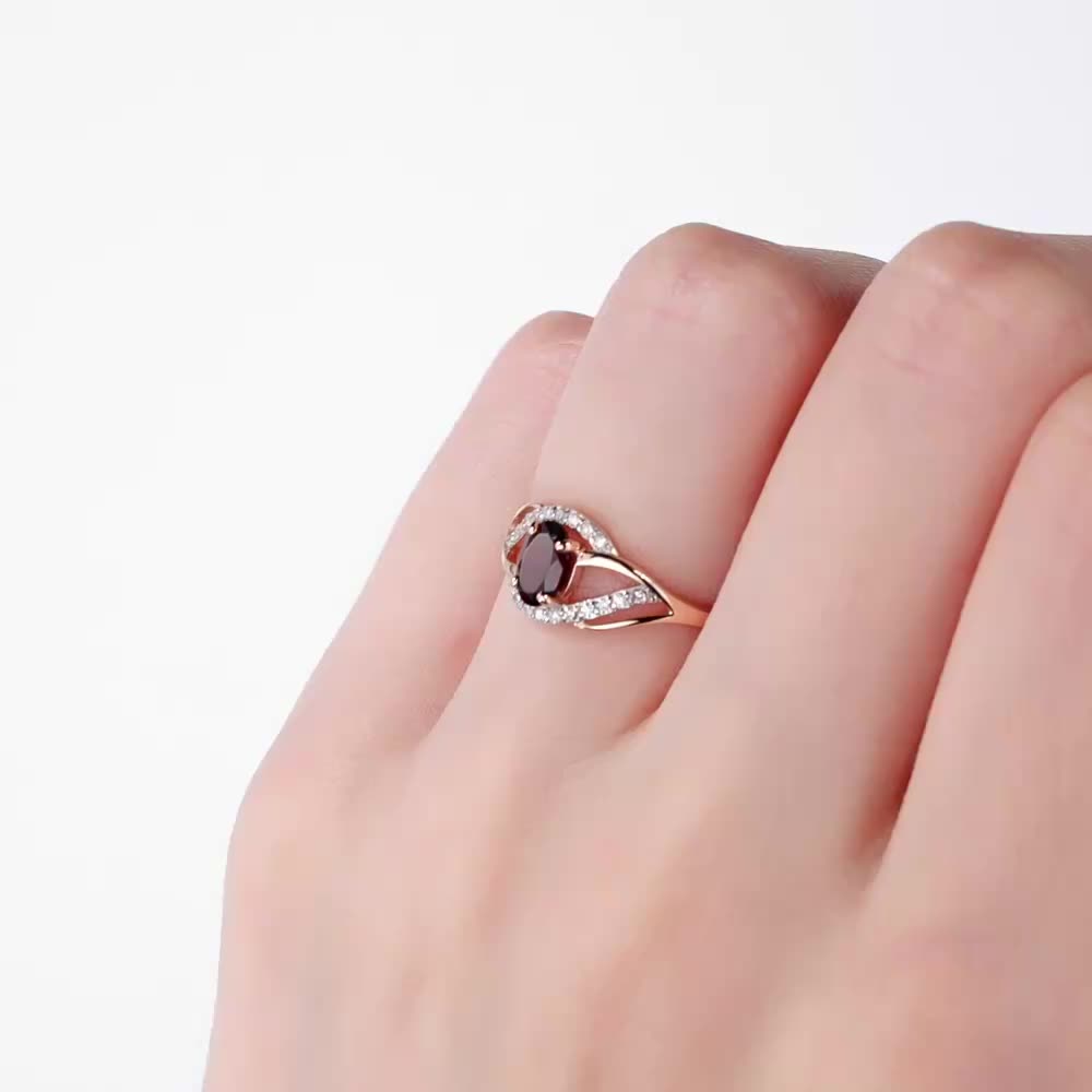 Золотое кольцо с бриллиантами природными и гранатами природными