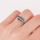 Кольцо с 2 бриллиантами черными природными облагороженными, 0.04 карат, огранка круг 57 граней, цвет 7, чистота 6, тип огранки А;