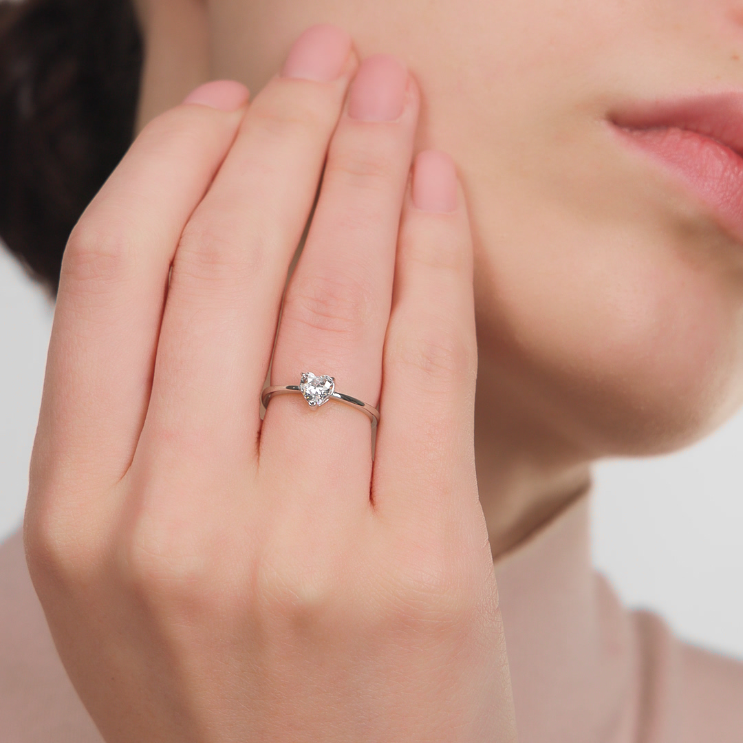 Серебряное кольцо с фианитом в виде сердечко очень удобная хорошо сидит красиво смотрится и блестит очень нравится нашу с удовольствием