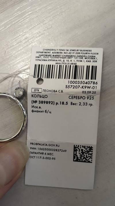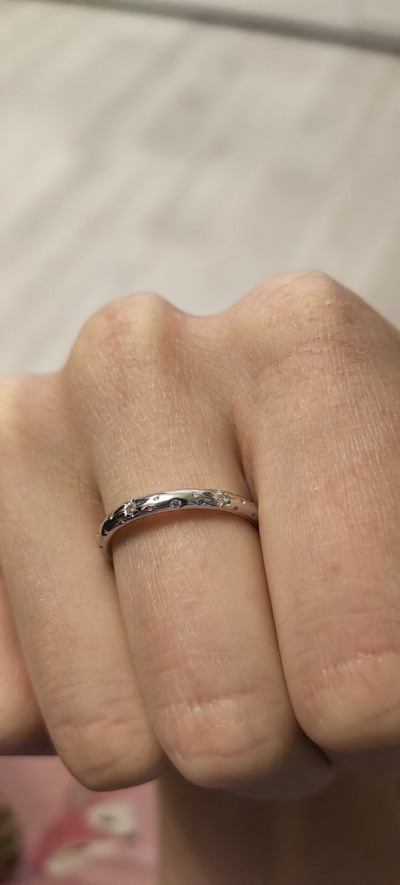 Очень милое минималистичное колечко, но в тоже время очень нарядное и заметное. Камни сидят прочно, переливаются. Проба, бирка, все есть