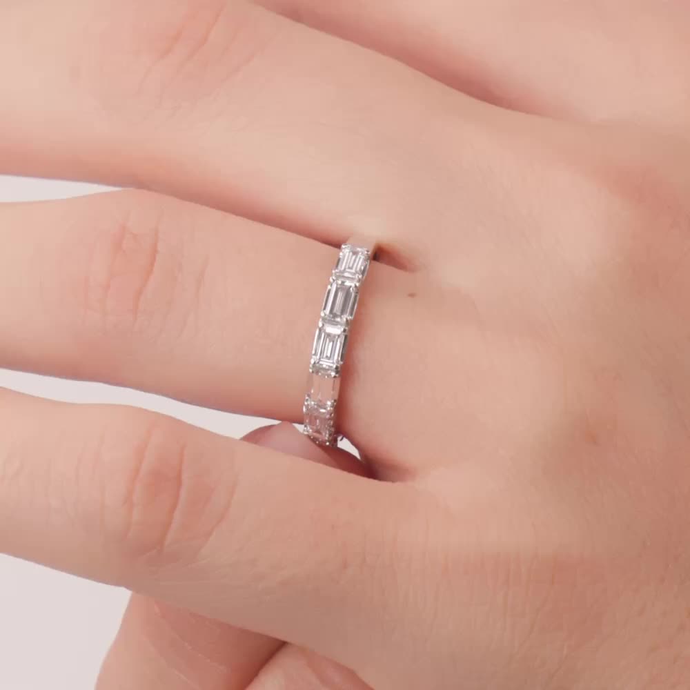 Кольцо с 7 бриллиантами выращенными, 0.79 карат, огранка багет 33 грани, цвет 3, чистота 6, тип огранки А;