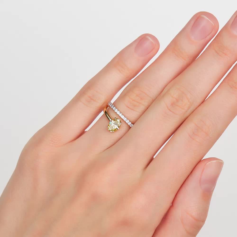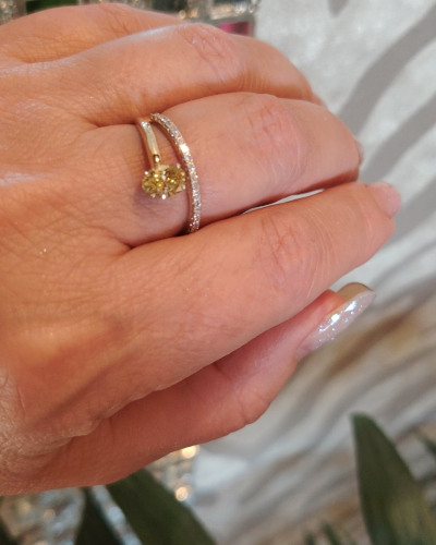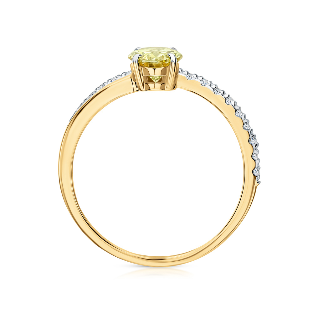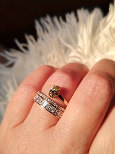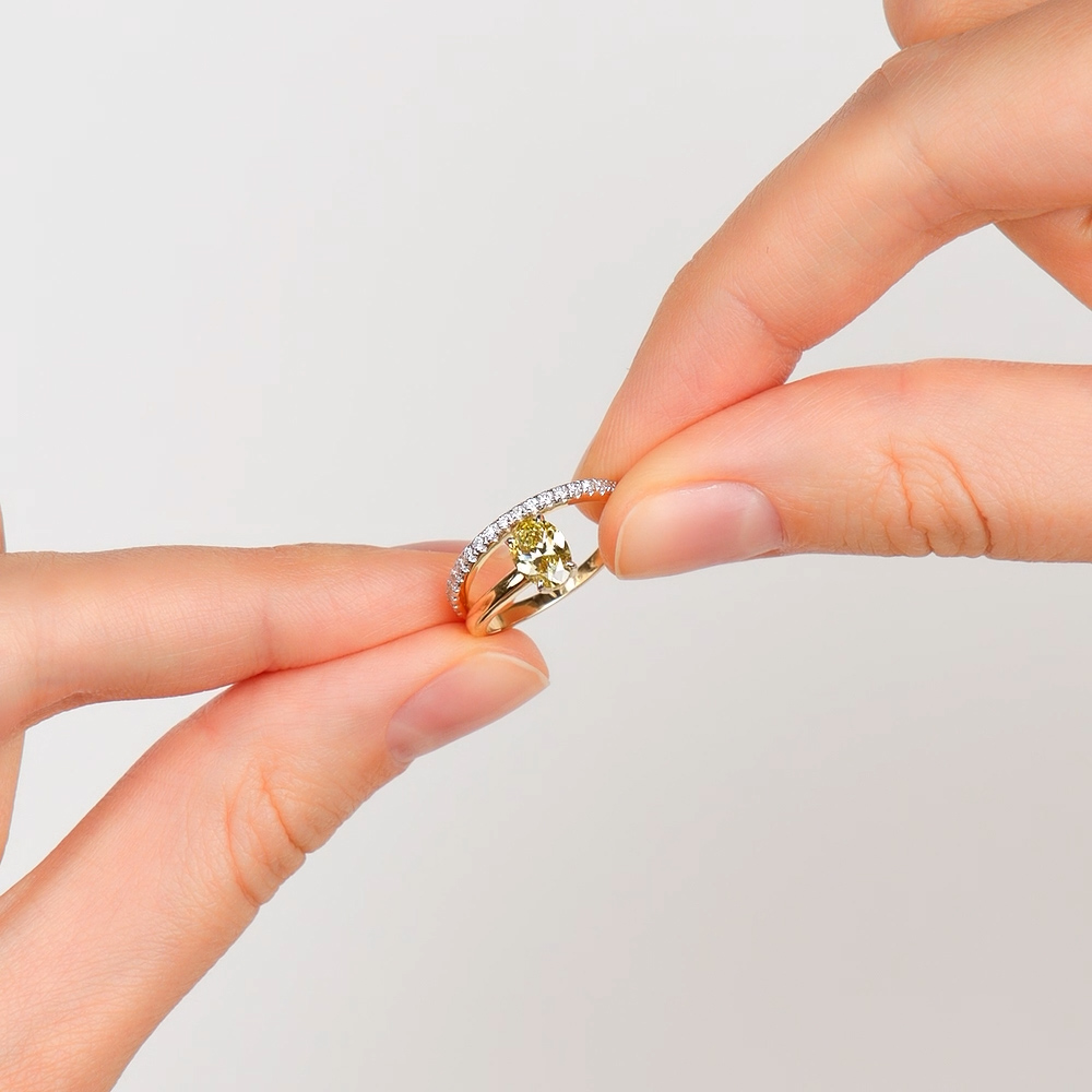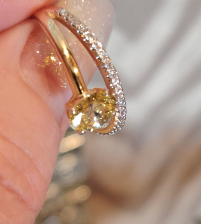 Кольцо с 1 бриллиантом выращенным, 0.72 карат, огранка овал 57 граней, цвет Желтый, чистота 5, тип огранки А;