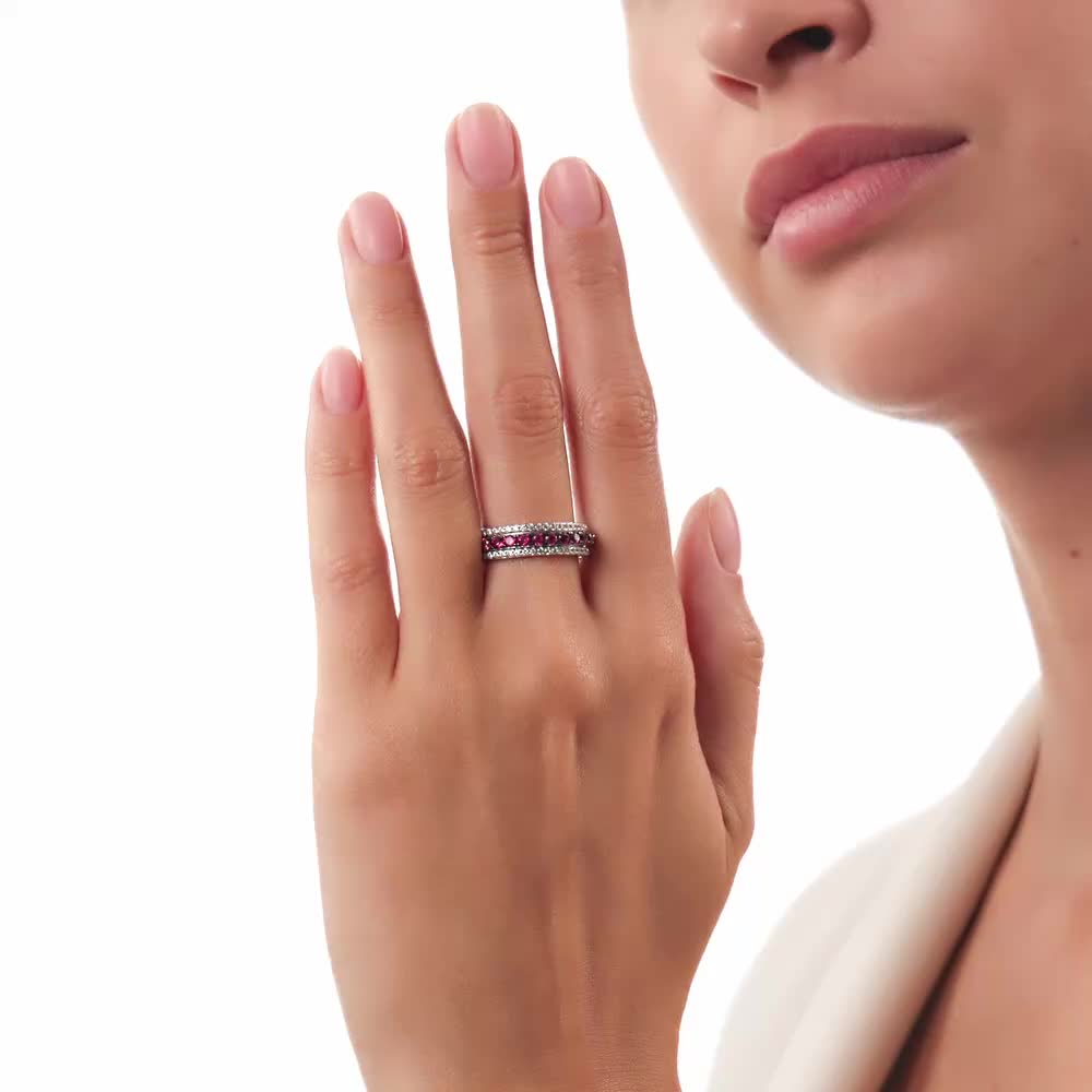 Кольцо составное, средняя часть с корундом вращается, что делает кольцо не очень крепким и не удобным. Лучше бы была просто дорожка. Однако оно красивое, камни блестят и переливаются на солнце. Посмотрим, как будет носиться