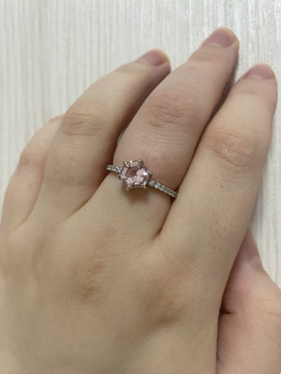 Кольцо принцессы! Очень нежное, красивый камень с необычной огранкой и персиковым оттенком