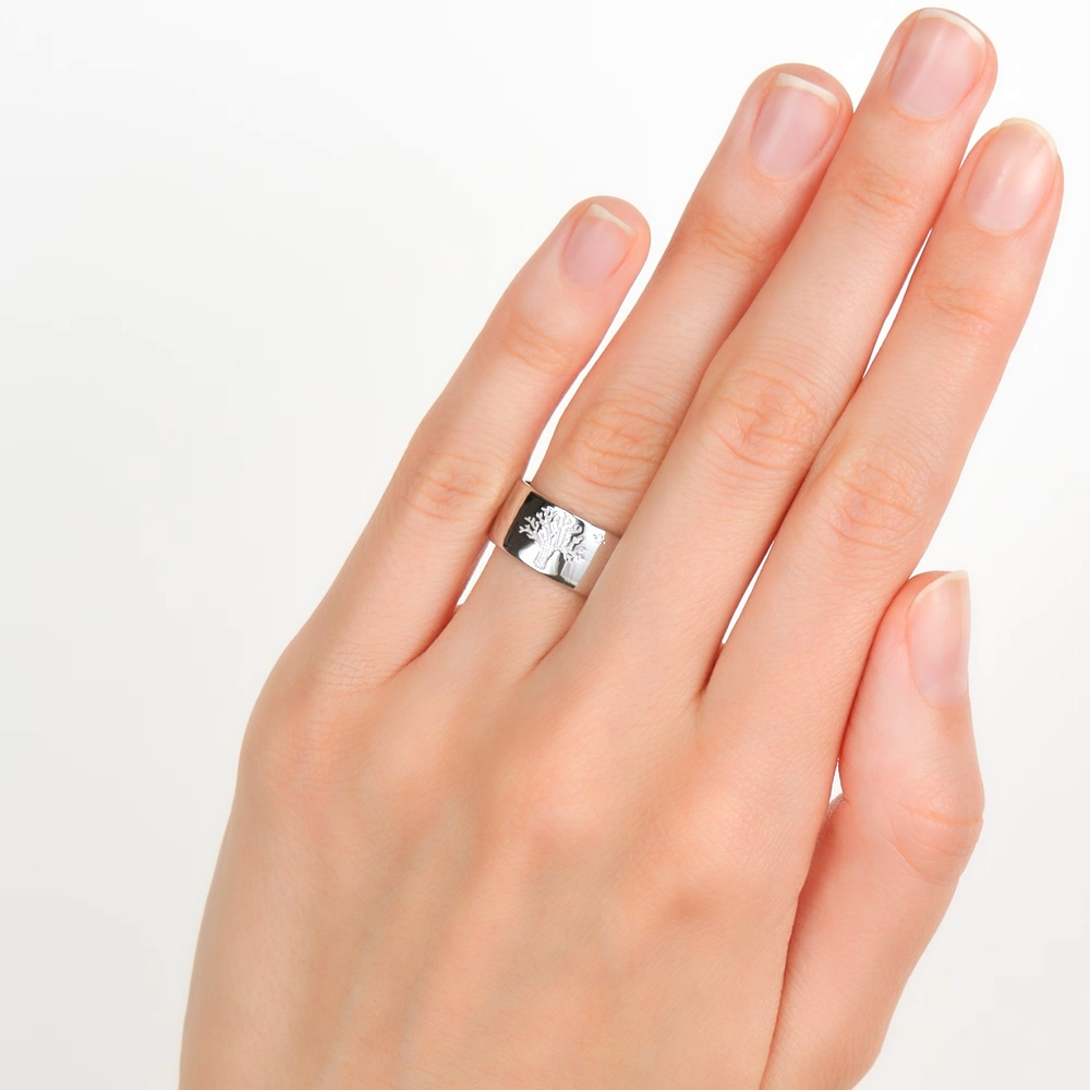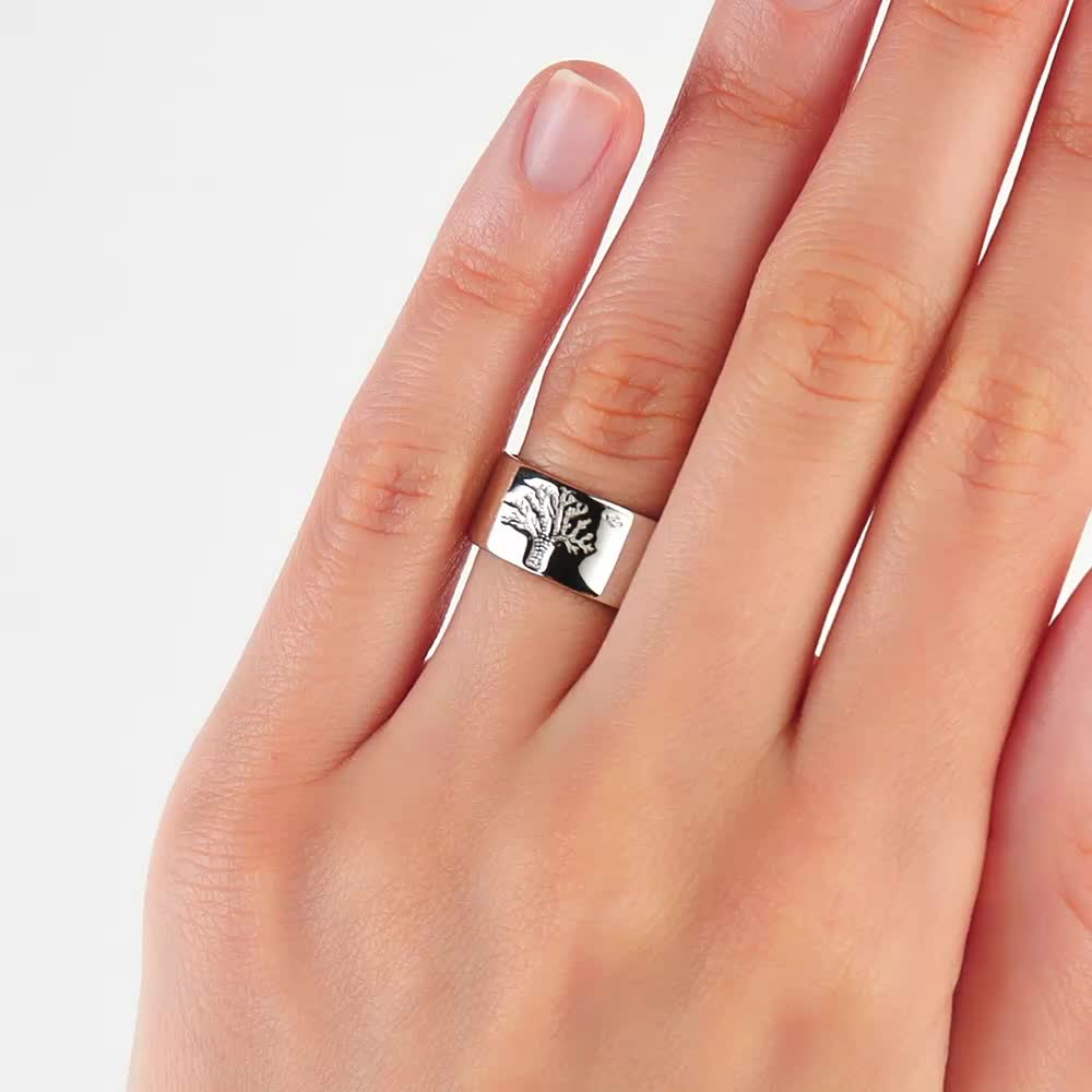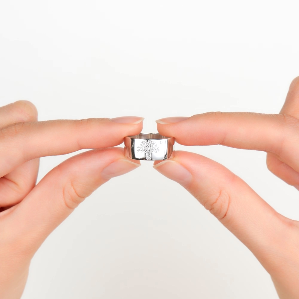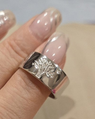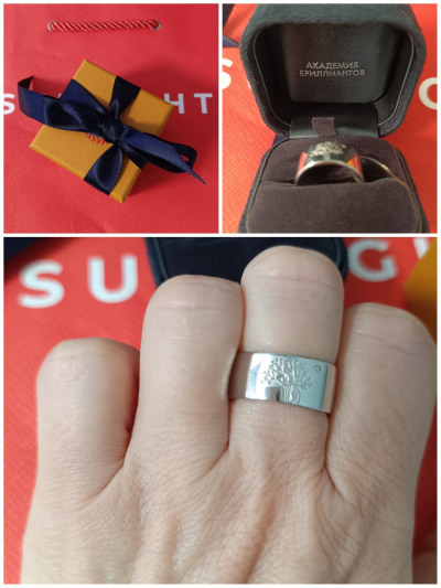 Прикольно! Сияющее кольцо с гравировкой дерева и брильянтиком. Можно придать смысл и подарить красиво.