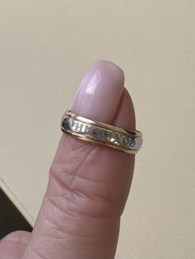 Мне муж подарил кольцо спаси и сохрани с белым золотом,я очень довольна, этой красотой