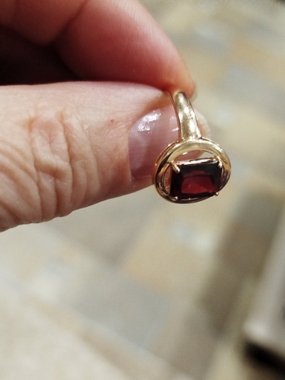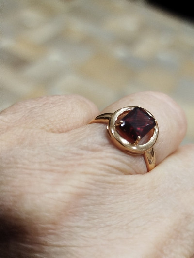 Кольцо с гранатом очень красивое,благородное,элегантное.Камешек большой,но не сильно выступает.На пальце сидит удобно.Рекомендую.
