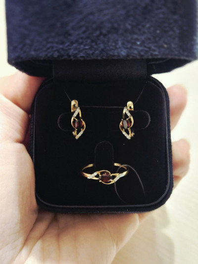 Очень красивый набор Очень сдержанный не вульгарный комплект, так как не сторонник красных камней, а тут все идеально