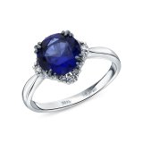 Золотое кольцо с бриллиантами выращенными и сапфирами выращенными