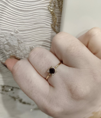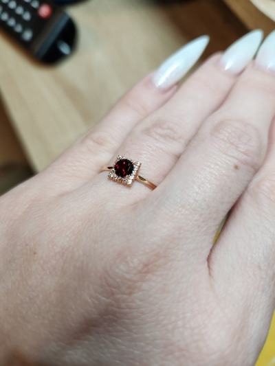 В редких случаях характеристики украшения или упаковка могут иметь отличия от представленных на фото или в описании.Кольцо с 1 гранатом природным, тип огранки В;