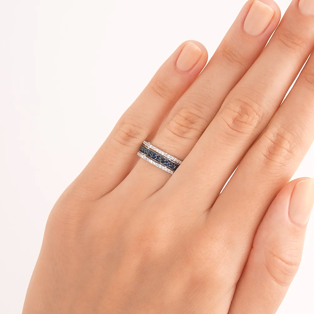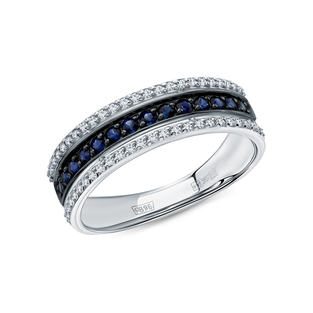 Золотое кольцо с бриллиантами природными и сапфирами природными