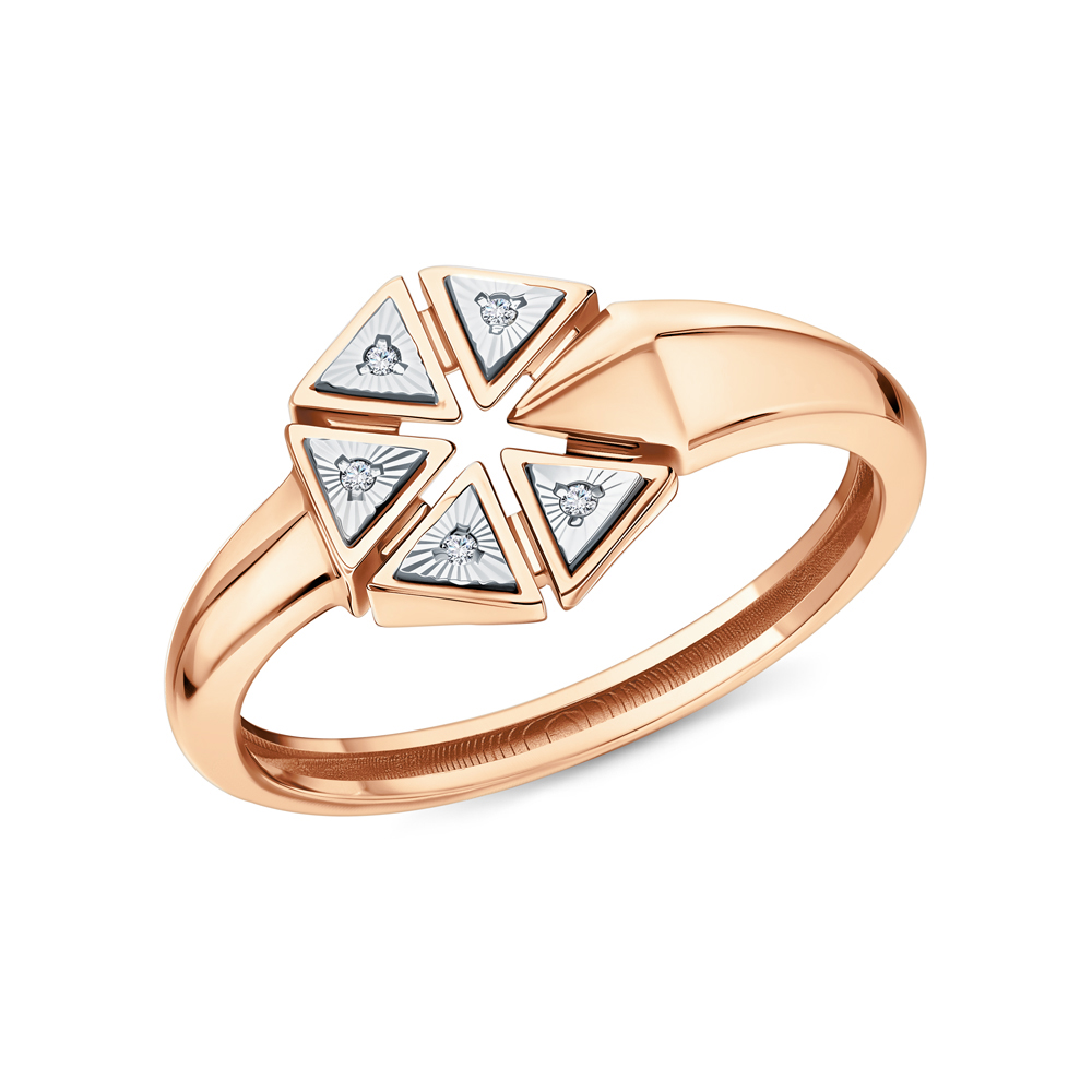 Кольцо с 5 бриллиантами природными, 0.013 карат, огранка круг 17 граней, цвет 2, чистота 2, тип огранки А;