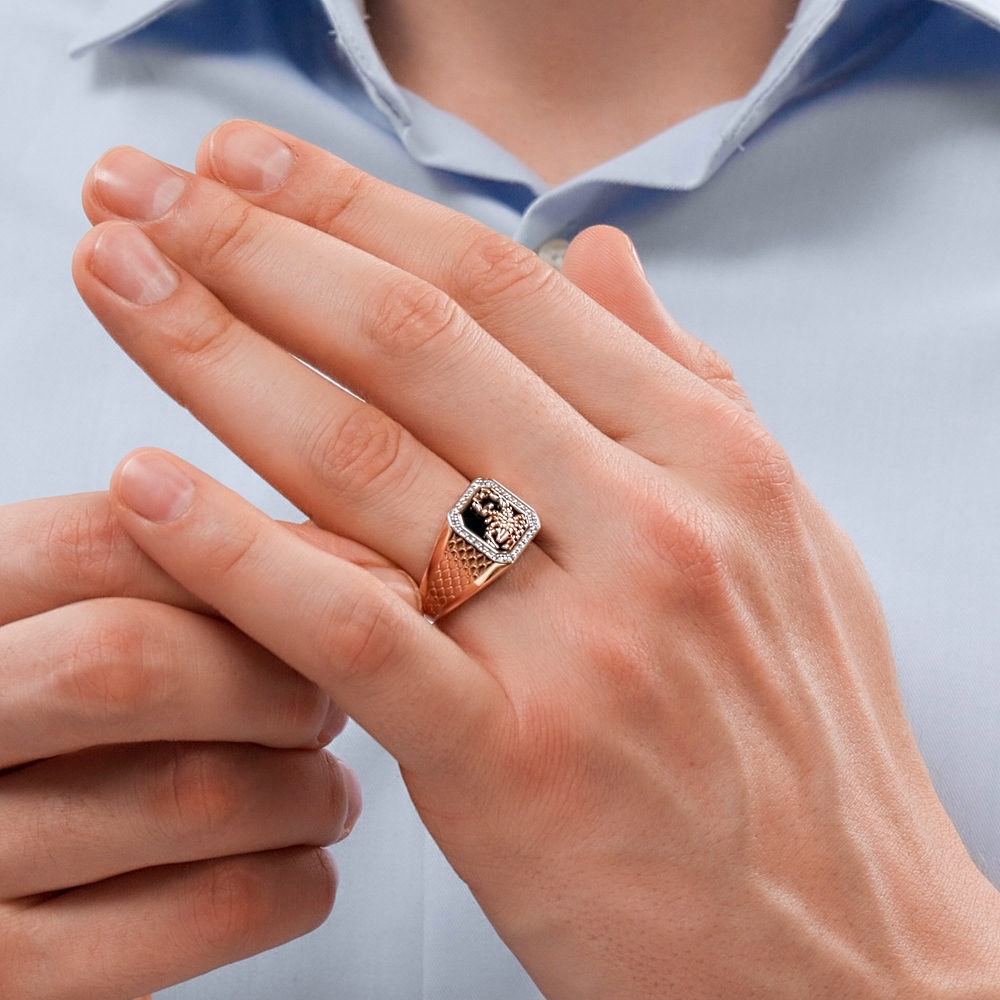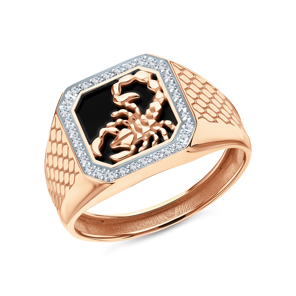 Золотое кольцо с бриллиантами природными и ониксом природным