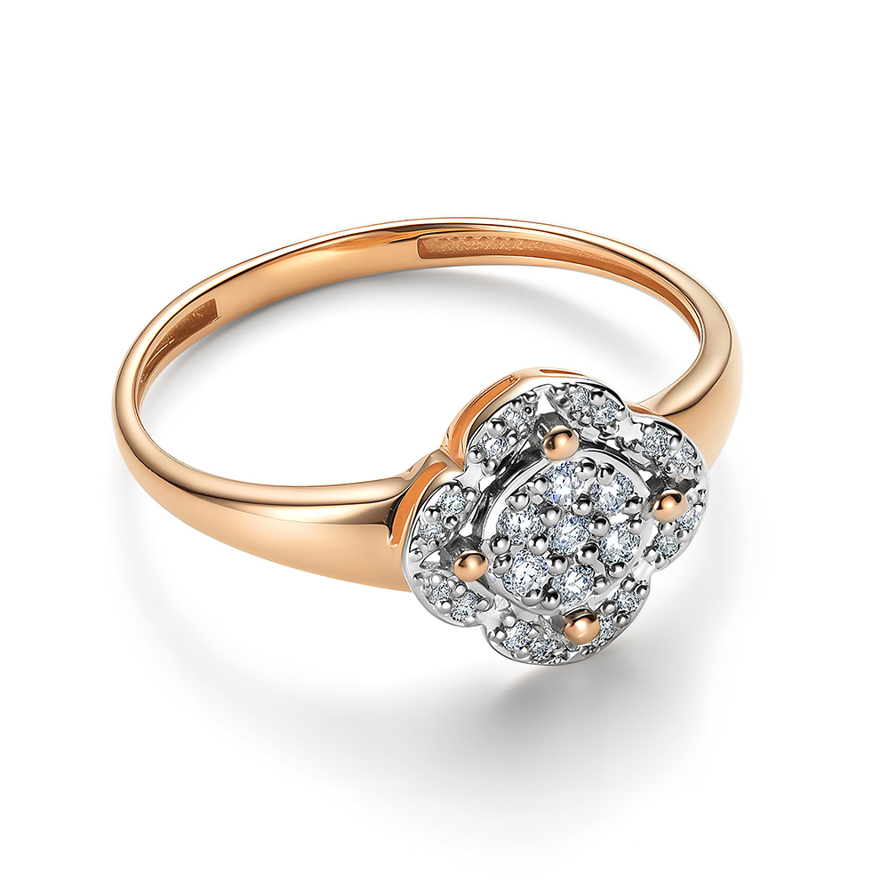 Кольцо с 7 бриллиантами природными, 0.083 карат, огранка круг 57 граней, цвет 4, чистота 5, тип огранки А;