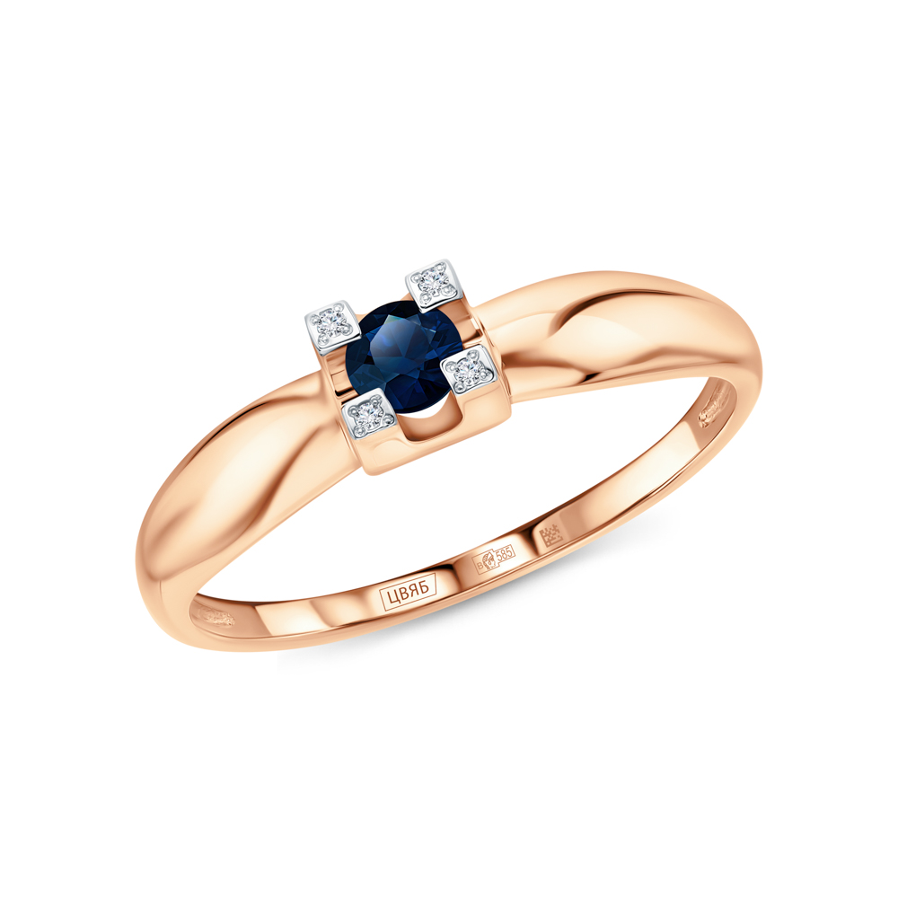 Золотое кольцо с бриллиантами природными и сапфирами природными