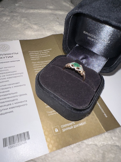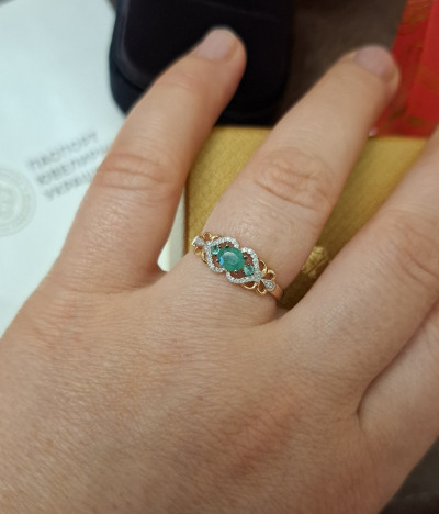 Колечко такое красивое, что завораживает. Бриллиантики сверкают как маленькие звёздочки, а изумруд завораживает своей красотой. Покупайте не пожалеете!!! Спасибо, за такую красоту