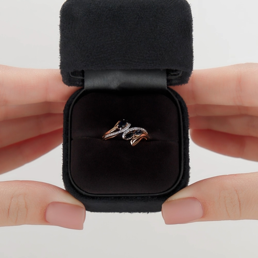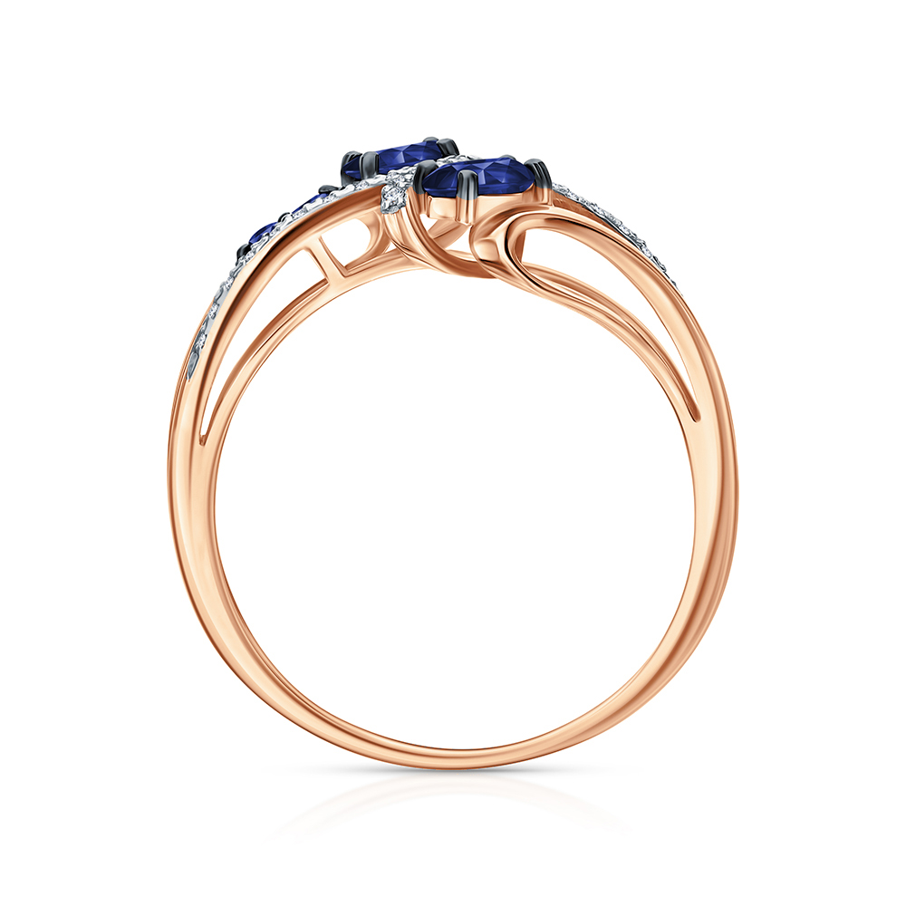 Золотое кольцо с бриллиантами природными и сапфирами природными