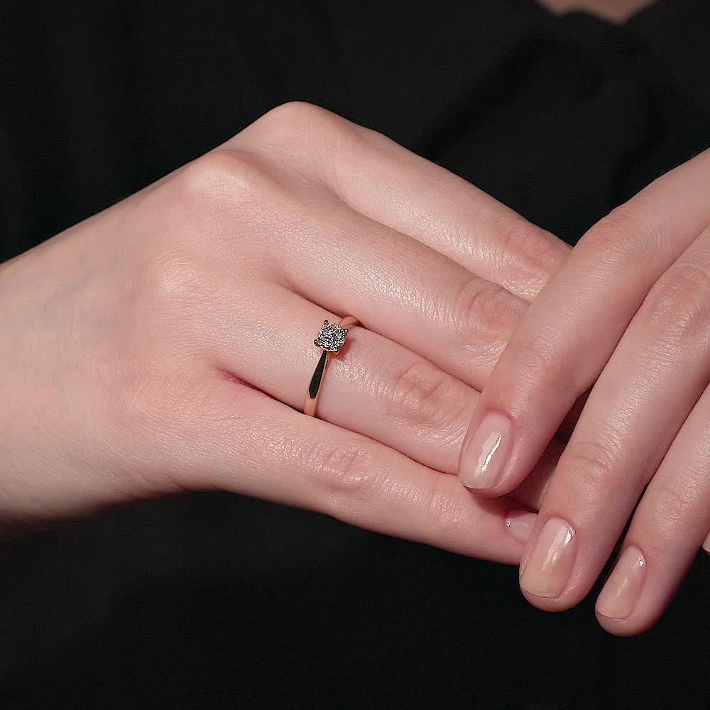 Кольцо с 1 бриллиантом природным, 0.04 карат, огранка круг 57 граней, цвет 3, чистота 5, тип огранки А;