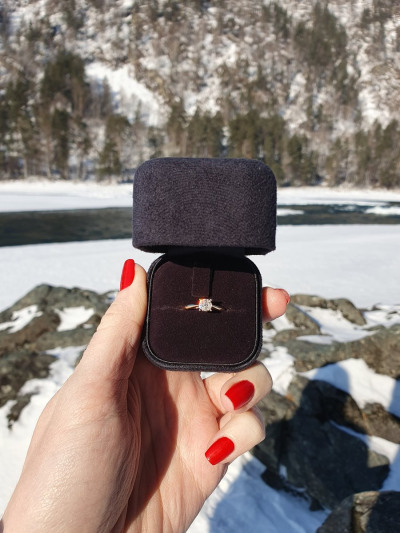 Помолвочное кольцо,девушка очень довольна. Камни красиво играют