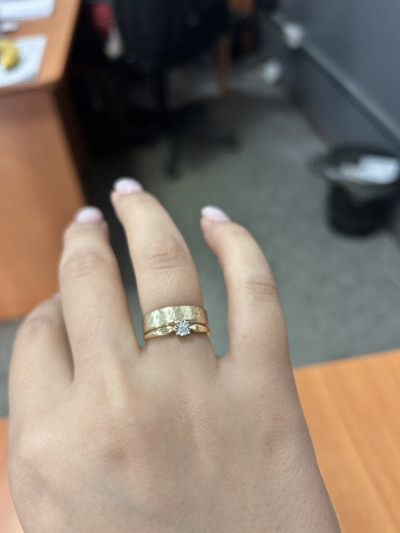 Очень красивое и аккуратное кольцо. Облегченное в передней части (где начинается белое золото).