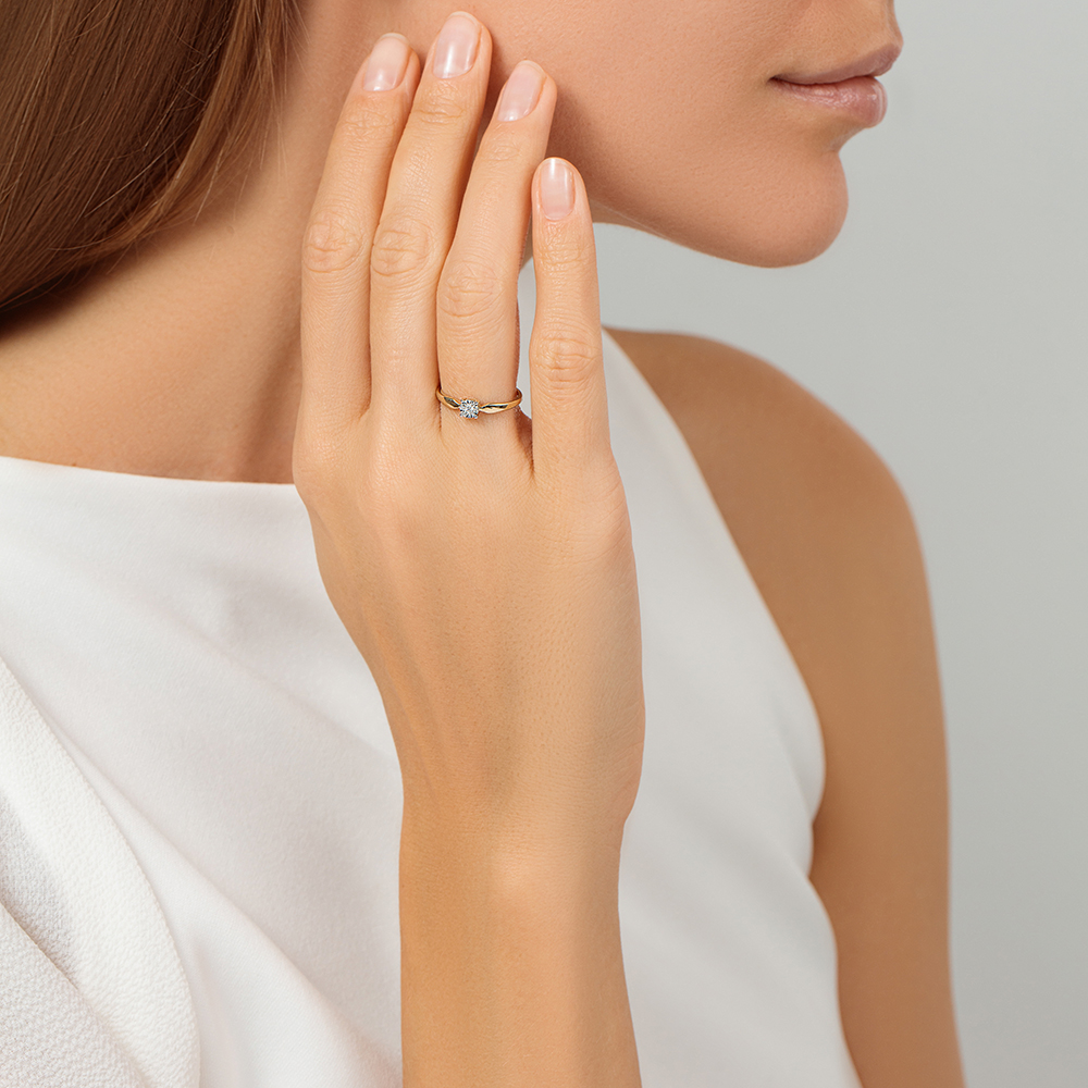 Кольцо с 1 бриллиантом природным, 0.02 карат, огранка круг 57 граней, цвет 3, чистота 5, тип огранки А;