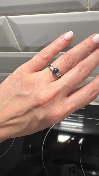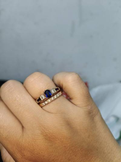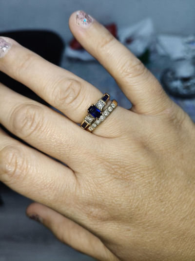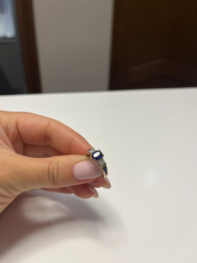 Красивое кольцо , камни играют при любом освещении, заметные бриллианты, ношу не снимая , смотрится супер как самостоятельно, так и в паре с обручальным кольцом. Не мало важный момент в этой модели не тонкая шинка , кольцо не деформируется
