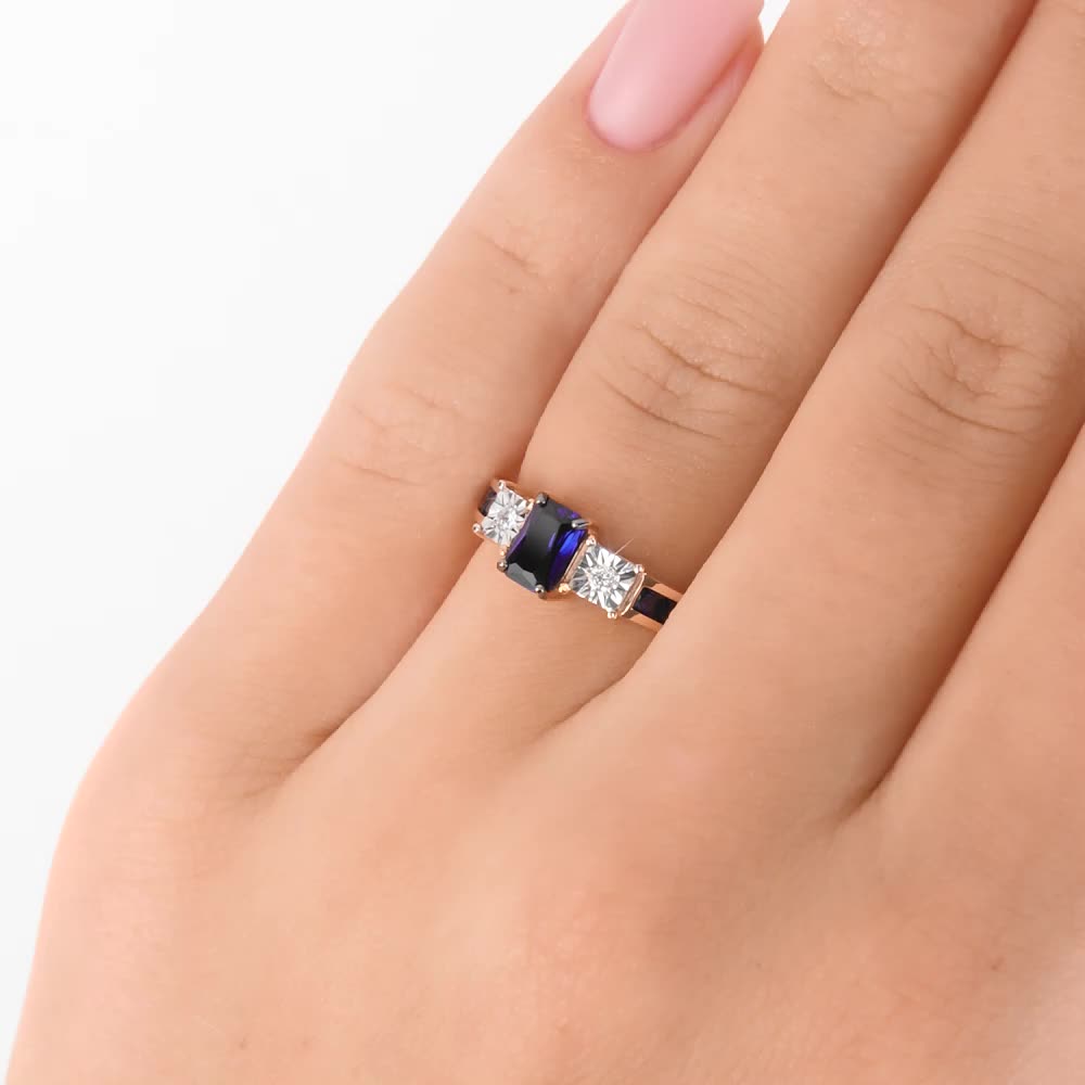 Кольцо «Бриллианты Якутии» с 1 сапфиром синтетическим, 0.654 карат, тип огранки Б;