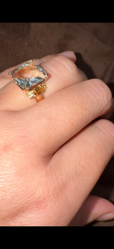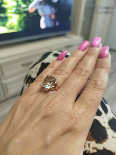 Кольцо очень эффектное. Сочетание камней очень удачное. Кольцо по разному выглядит в разное время дня и при разном освещение. Долго искала что-то подобное. Ювелиру- дизайнеру большое спасибо.