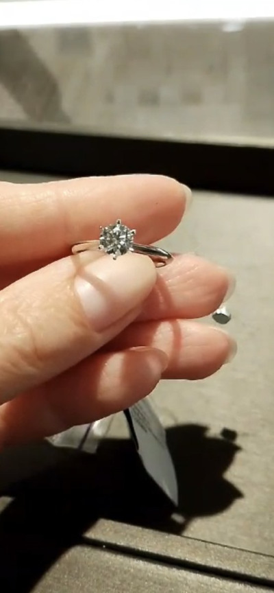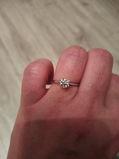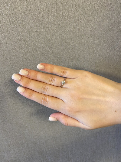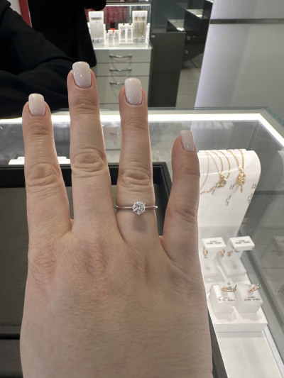 Тонкое, нежное украшение. Лучше на тонкие пальцы. Бриллиант 0,6.