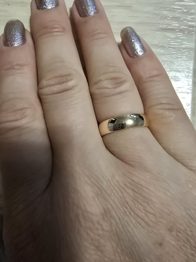 Очень красивое, весомое, полновесное классическое обручальное кольцо. Отлично ощущается, легко одевается. Идеальная посадка. Глаз не отвести, какая красота!