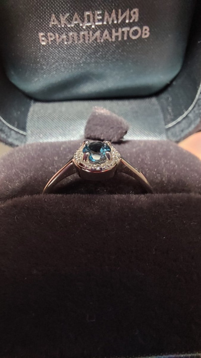 Колечко миниатюрное, выбирала между Лондон топаз и скай. Синий камушек понравился больше. Советую к покупке, цена хорошая
