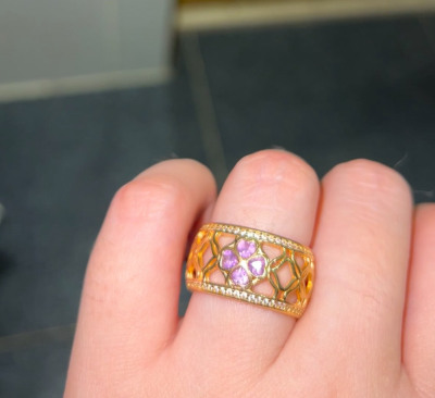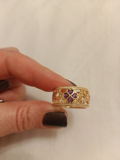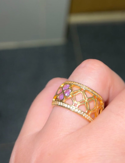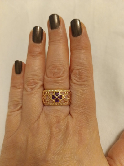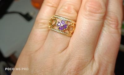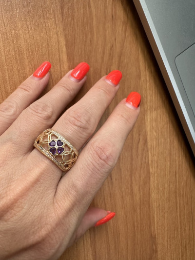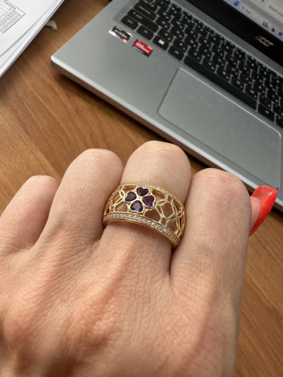 Красивое кольцо с аметистами и фианитами, в восточном стиле. Купила в комплект к серьгам.