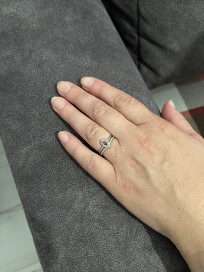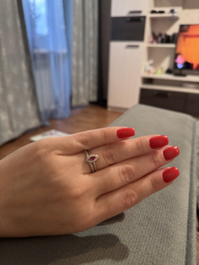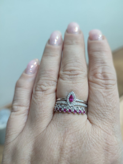Очень симпатичное колечко с натуральным рубином и бриллиантиками. Интересный дизаин. Покупкой очень довольны.