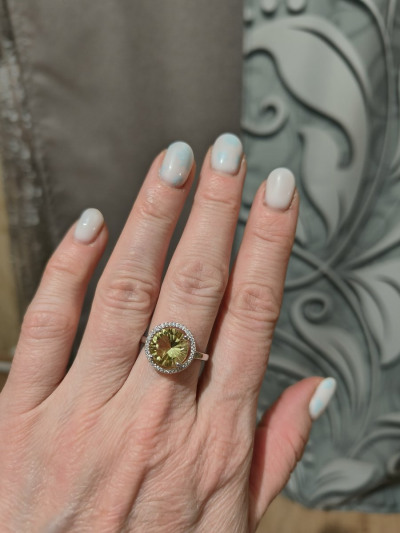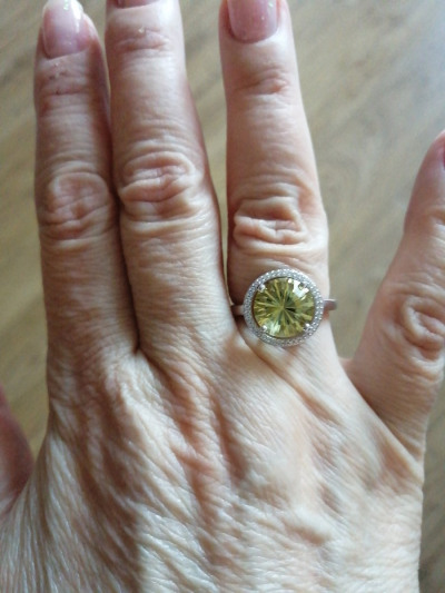 Купила серебряное кольцо с лимонным кварцем в окружении фианитов.. Огранка кварца просто обалденная!!!!