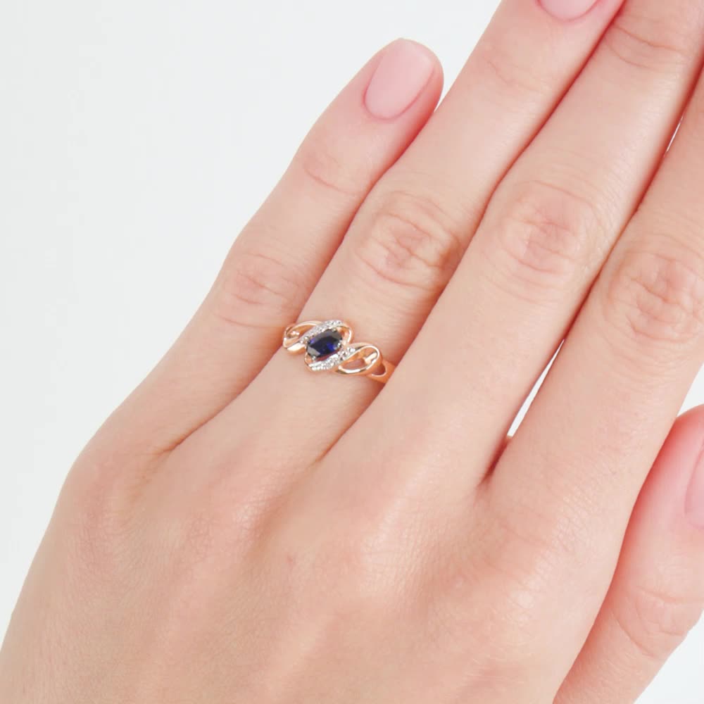 Золотое кольцо с бриллиантами природными и сапфирами выращенными