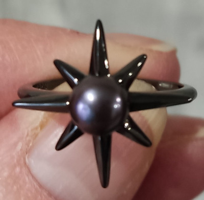 Кольцо, вставка: жемчуг пресноводный культивированный черный;