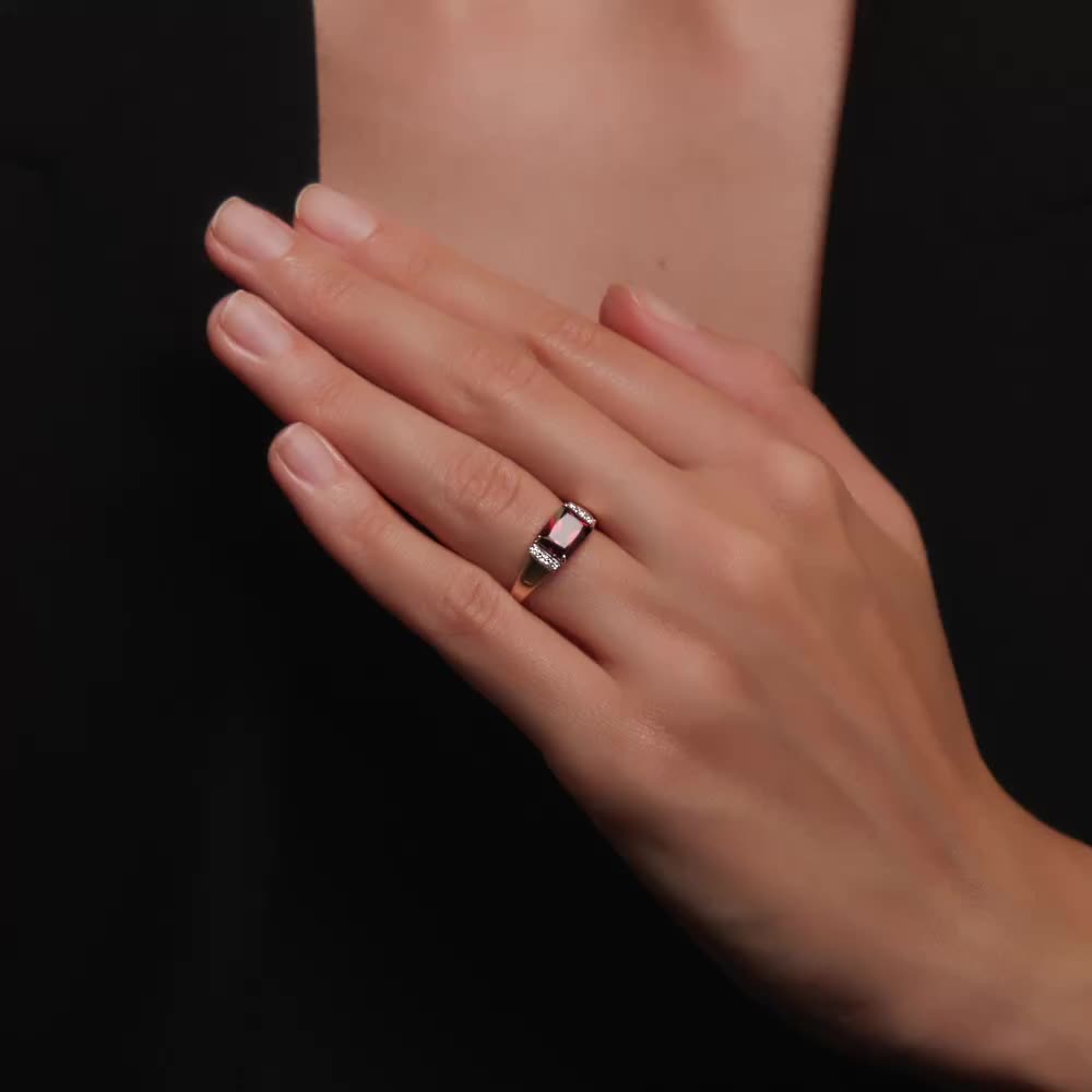 В редких случаях характеристики украшения или упаковка могут иметь отличия от представленных на фото или в описании.Кольцо с 1 гранатом природным, тип огранки Б;