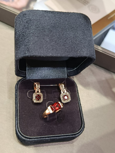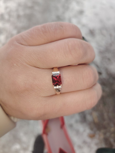 Покупала кольцо к ранее купленным серьгам. У граната насыщенный и глубокий красный цвет. Рекомендую!
