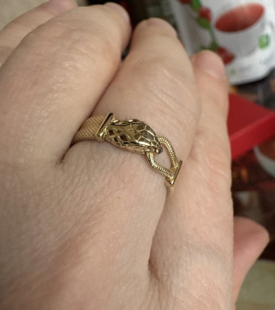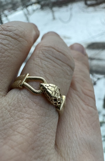 Долго выбирала среди колец змеек, это лучшее что нашла. Очень удобное кольцо в носке, не переворачивается и не цепляет одежду, идеально на каждый день. Фантастически проработанный змей Уроборос как символ регенеративного цикла жизни, просветления, обновления и бесконечности. Ращмер кольца16,5 достался мне в весе 3,12 г.