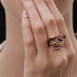 Серебряное кольцо с фианитами и аметистами природными