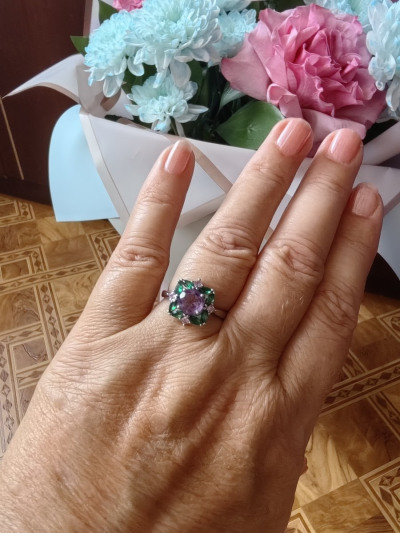 Кольцо замечательное,в размер. Цветовое сочетание отличное,все камешки на месте,выполнено аккуратно. Достаточно лёгкое. Красота!