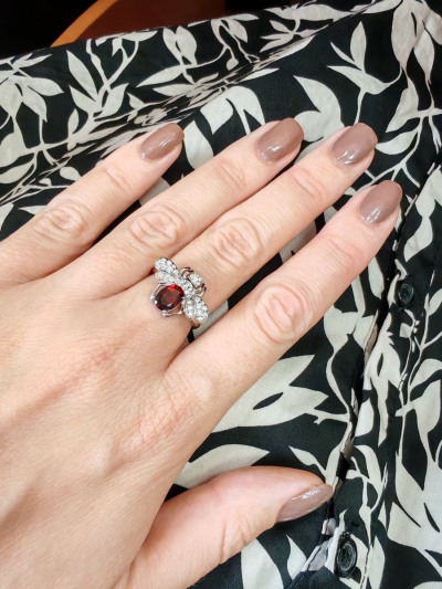 Серебряное кольцо с фианитами и гранатами природными